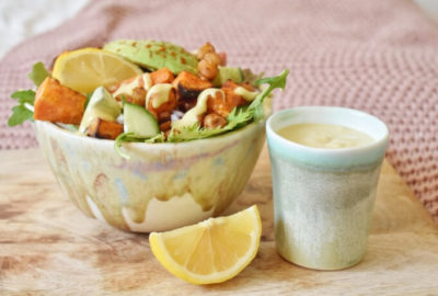This weeks recipe of the week is Mediterranean inspired for spring and summer. Made with kidney beans, cannellini beans and chickpeas along with fresh capsicum, cucumber, red onion, leafy herbs and olives, topped with a garlic dijon dressing. Super fresh and delicious, its perfect for the warmer weather.